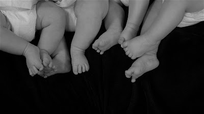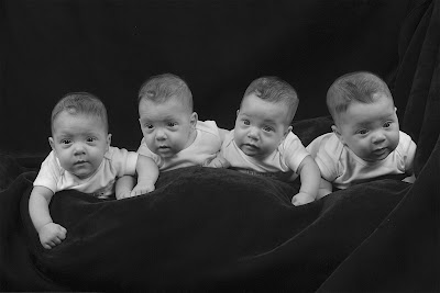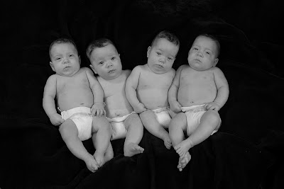 The picture with all them in their onesies is TOO CUTE! They look like little men. Simply Adorable! I love the b/w photos, too, but it is nice to have the color to grab their pretty skin tones!! You are truly blessed.