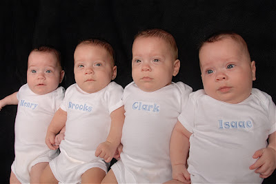 How Precious!!!! You truely have a beautiful family! And your photographer did a really nice job. You will look back at these photos for years to come and always remember how you felt while holding those four precious babies. Hope to talk to you soon. Oh, and it was nice to meet the boys and Brad in person the other day finally.